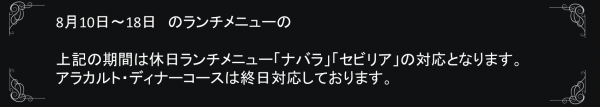 ♦8月のランチ営業のお知らせ